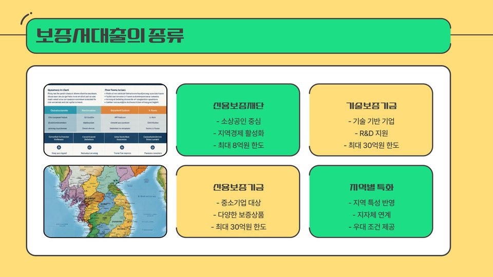 보증서대출은 사업자가 자금을 필요로 할 때, 신용보증기관이 대출에 대해 보증을 서주는 대출 방식입니다. 이 제도는 많은 개인사업자에게 실질적인 도움을 주며, 자금 조달의 문턱을 낮춰주는 역할을 합니다. 보증서를 통해 대출을 받을 수 있는 장점으로는 신용도가 낮은 사업자도 쉽게 대출을 받을 수 있다는 점이 있습니다. 신용보증재단을 통해 보증을 받으면, 연 1%대의 저렴한 이자율로 대출을 받을 수 있습니다.