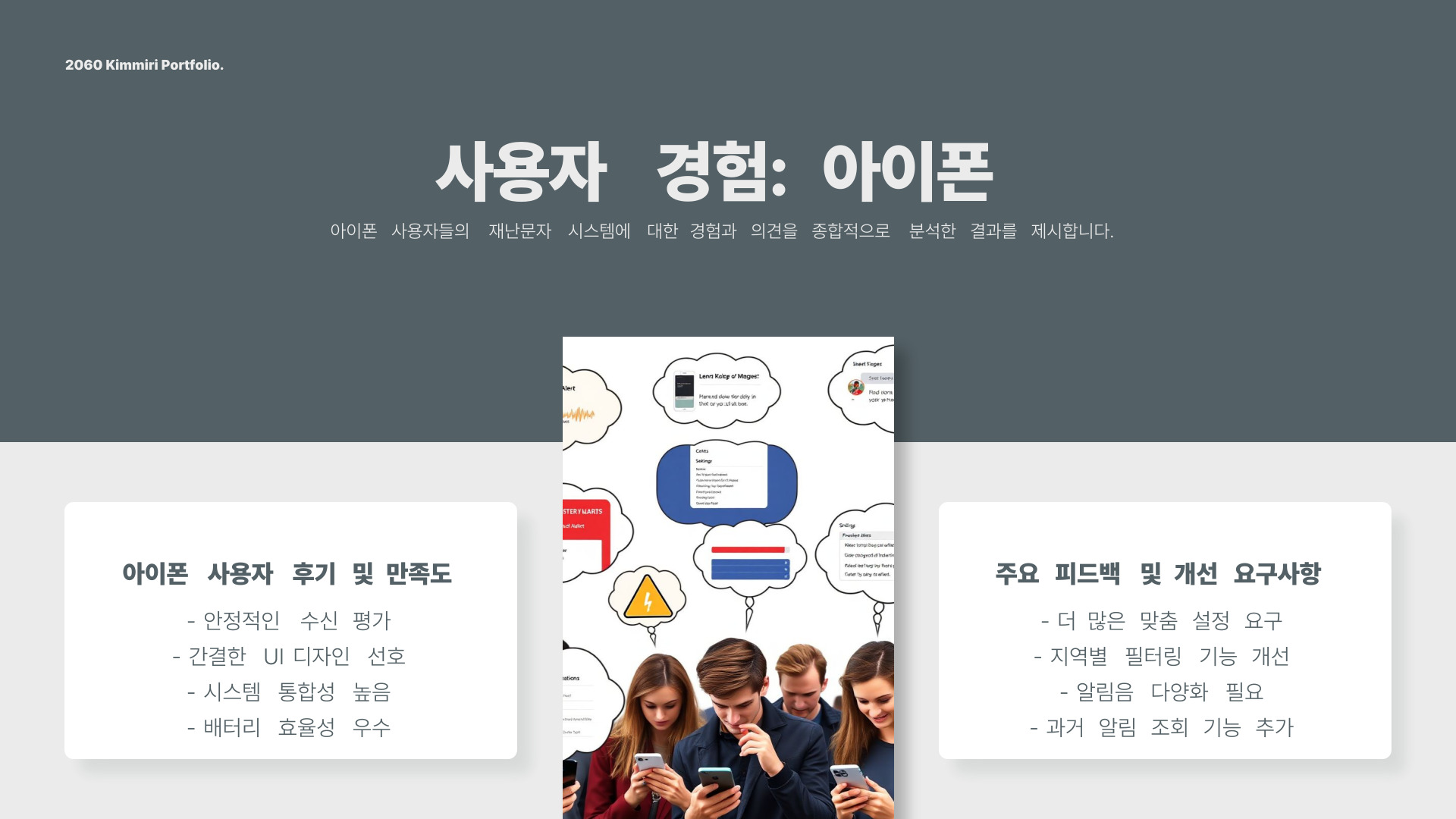 - 아이폰은 단순하고 직관적인 인터페이스를 가지고 있음.