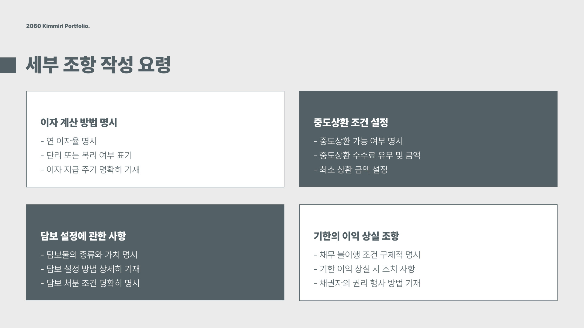 | 이자율 및 상환 조건 | 명확한 이자율 및 상환 방법 기재 |