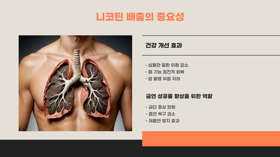 금연을 시도하는 많은 사람들에게는 니코틴의 배출 과정을 이해하는 것이 도움이 됩니다. 담배를 피우지 않더라도 간접 흡연이나 환경적 요인으로 인해 니코틴이 체내에 축적될 수 있습니다. 이 때문에 주기적으로 니코틴 해독이 필요합니다. 해독 과정은 간단한 생활 습관 변화와 식단 조정으로도 가능하며, 이를 통해 신체의 자연적인 해독 시스템을 지원할 수 있습니다.