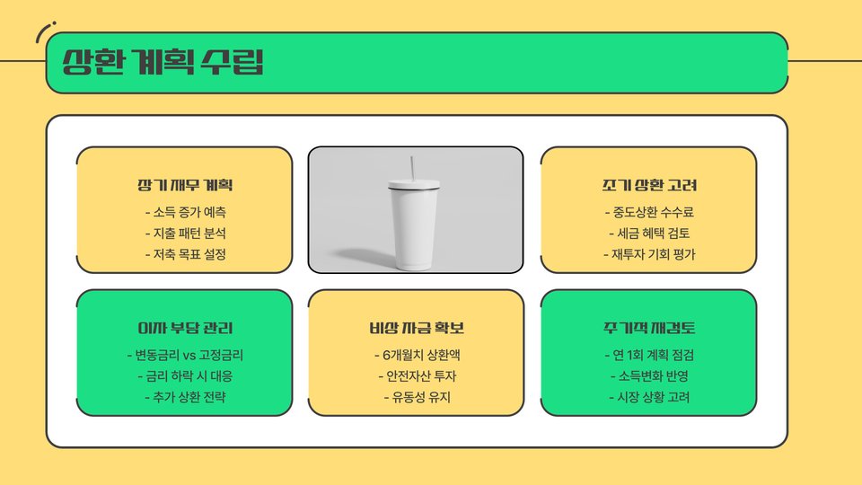 게다가, 대출 상환을 완료하기 전에 사전 상환이 가능하므로, 재정 여건이 나아질 경우 빠르게 대출을 상환할 수 있는 장점도 마련되어 있습니다. 이러한 유연성 덕분에 대출자는 장기적인 금융 계획을 세울 수 있으며, 갑작스러운 상황 변화에 대응할 수 있는 여유를 갖추게 됩니다.