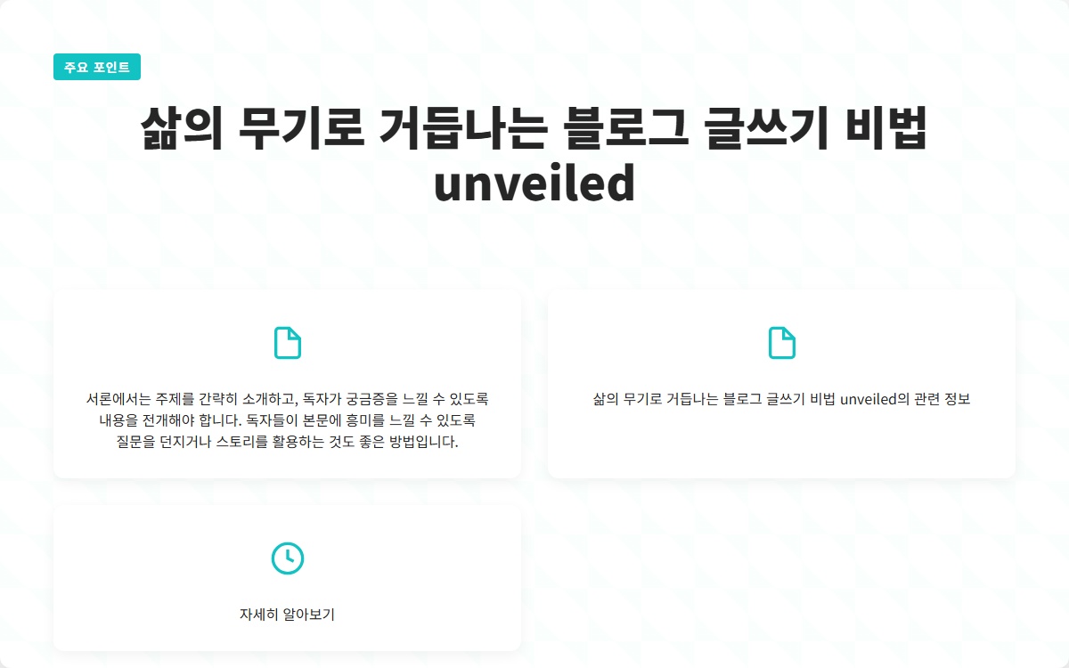 | 업데이트와 소통 | 지속적인 콘텐츠 업데이트 및 독자 소통 |