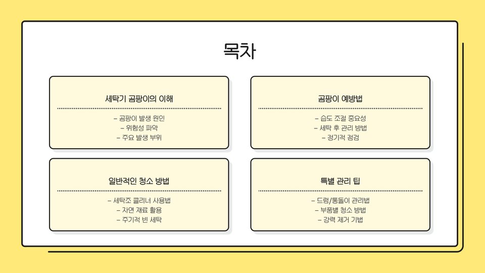 따라서 세탁기 청소는 정기적으로 수행해야 하며, 본 포스팅에서는 곰팡이를 효과적으로 제거하고 예방하는 방법을 알아보겠습니다. 청결한 세탁기는 더 깨끗한 세탁물을 보장합니다.