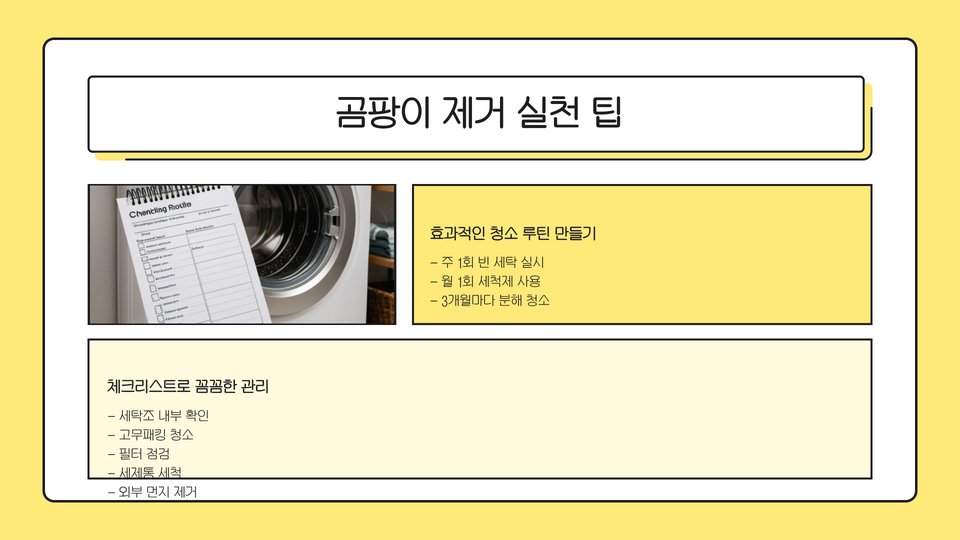 세탁기 청소는 곰팡이를 효과적으로 제거하고 예방하는 데 필수적입니다. 정기적인 관리와 올바른 청소 방법을 통해 세탁기를 항상 청결하게 유지하면, 더 건강하고 깨끗한 세탁 결과를 얻을 수 있습니다. 세탁기 청소법을 실천하여 곰팡이 문제를 극복하고, 항상 쾌적한 세탁 환경을 유지하세요. 세탁기가 깨끗할수록 우리의 삶도 더 건강해질 것입니다.