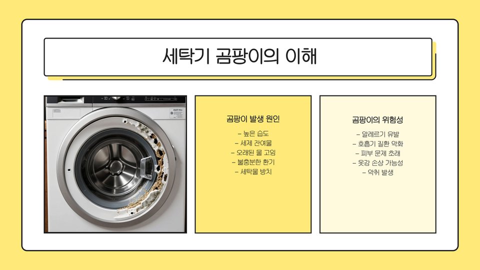 세탁기는 우리의 일상에서 없어서는 안 될 필수 가전제품입니다. 하지만 곰팡이가 생길 수 있는 환경을 제공하기도 합니다. 특히 세탁기가 젖은 상태로 오래 방치되면, 곰팡이가 쉽게 번식하게 됩니다. 곰팡이는 세탁기 내부의 고무패킹, 드럼, 세제 투입구 등 다양한 곳에 발생할 수 있으며, 이는 세탁물에 악취를 유발하고 건강에도 해로울 수 있습니다.