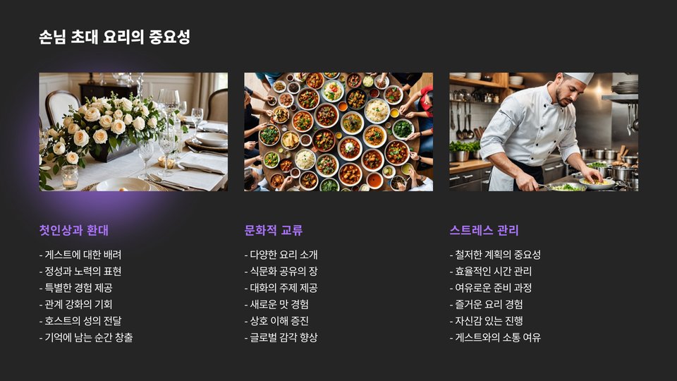 Tags: 손님초대요리, 요리노하우, 손님맞이, 메뉴구성, 분위기조성, 소통의중요성, 식사경험, 요리팁, 손님초대, 요리전문가