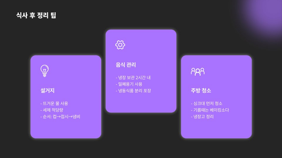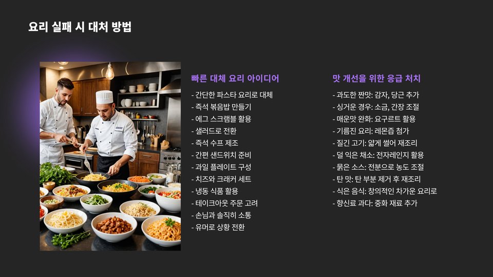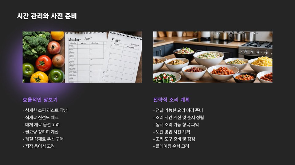 - 효율적인 조리 계획을 세워 시간을 잘 관리하라.