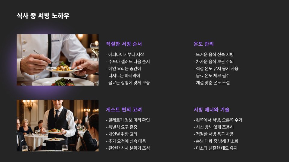- 멋진 플레이팅으로 시각적인 만족감을 제공하라.