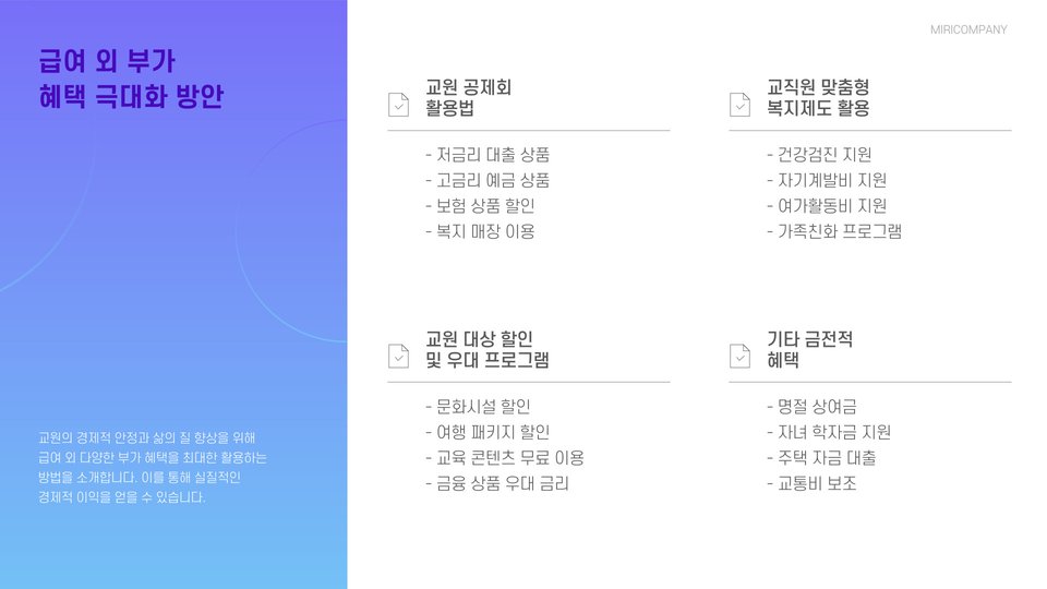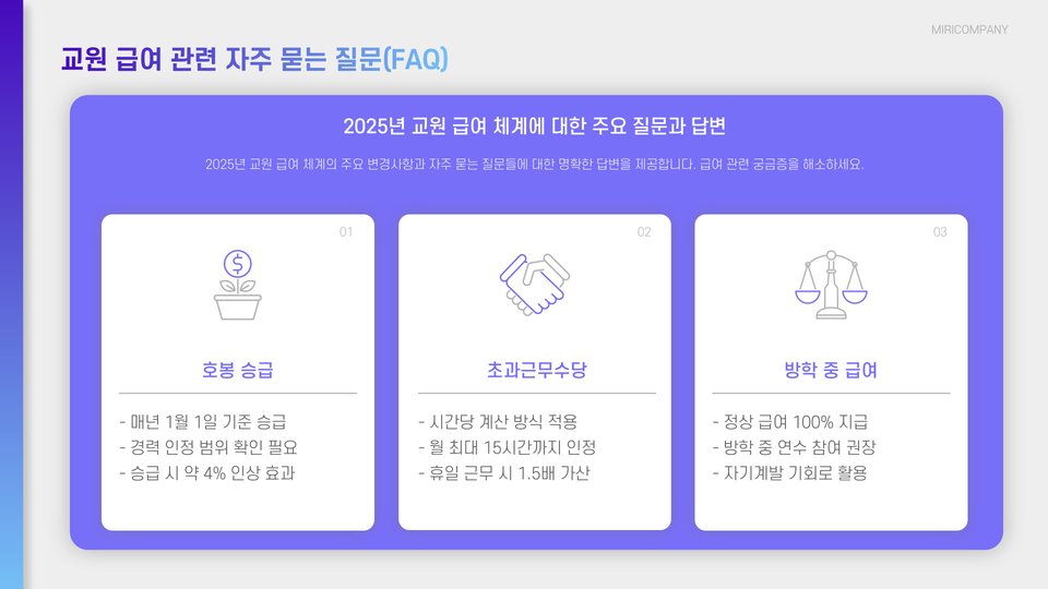- 2025년 교원 급여가 3% 인상되어 안정적인 소득 보장.