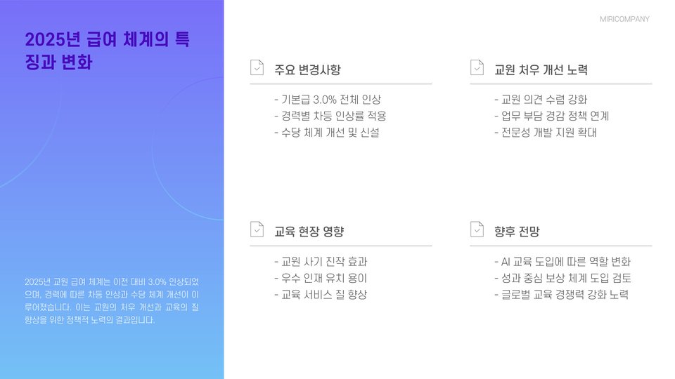 - 2025년 교원 급여는 3.0% 인상으로 긍정적인 변화 기대
