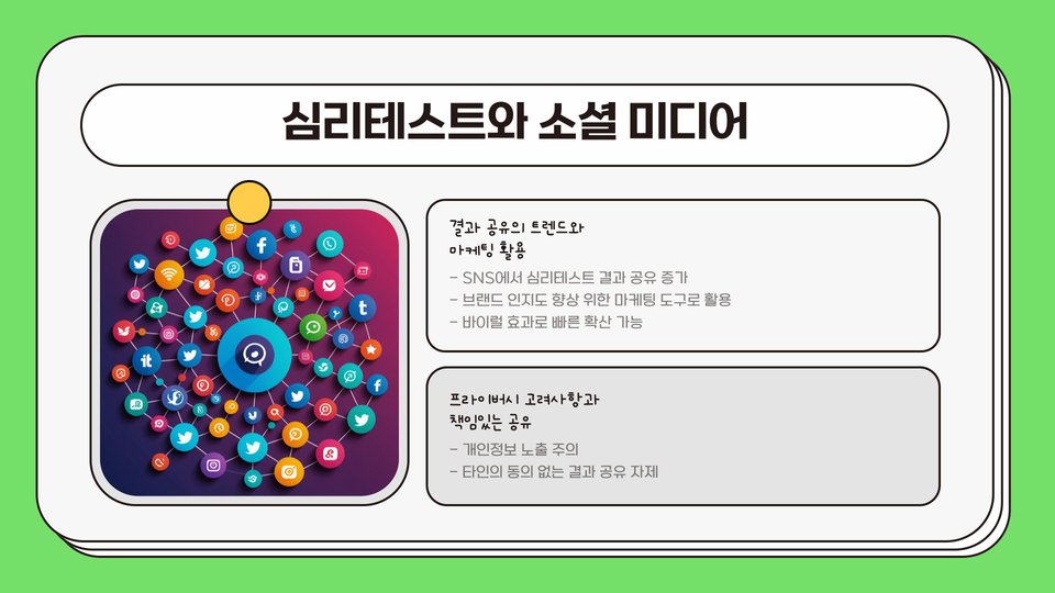 특히, 요즘은 친구나 가족과 함께 사용할 수 있는 재미있는 소셜 테스트도 유행하고 있습니다. 이러한 테스트는 다양한 주제를 다루며, 사람들의 성격이나 관계에 대한 유쾌한 통찰을 제공하기도 합니다. 심리테스트 사이트는 자기 이해를 높이는 데 큰 기여를 하고 있습니다.