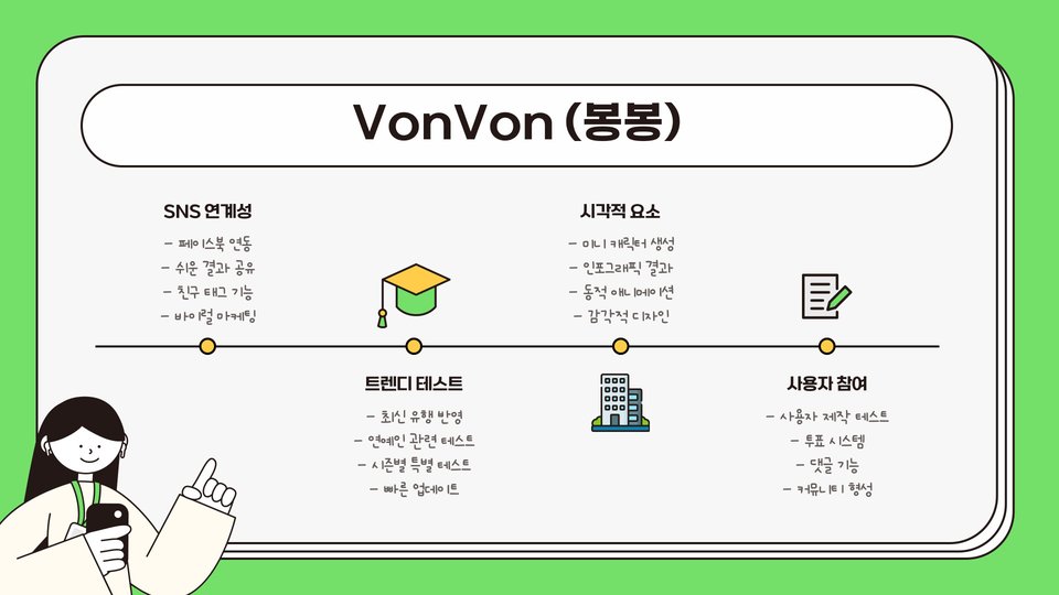 • 소셜 테스트가 유행, 친구 및 가족과 함께 즐기기 좋음.