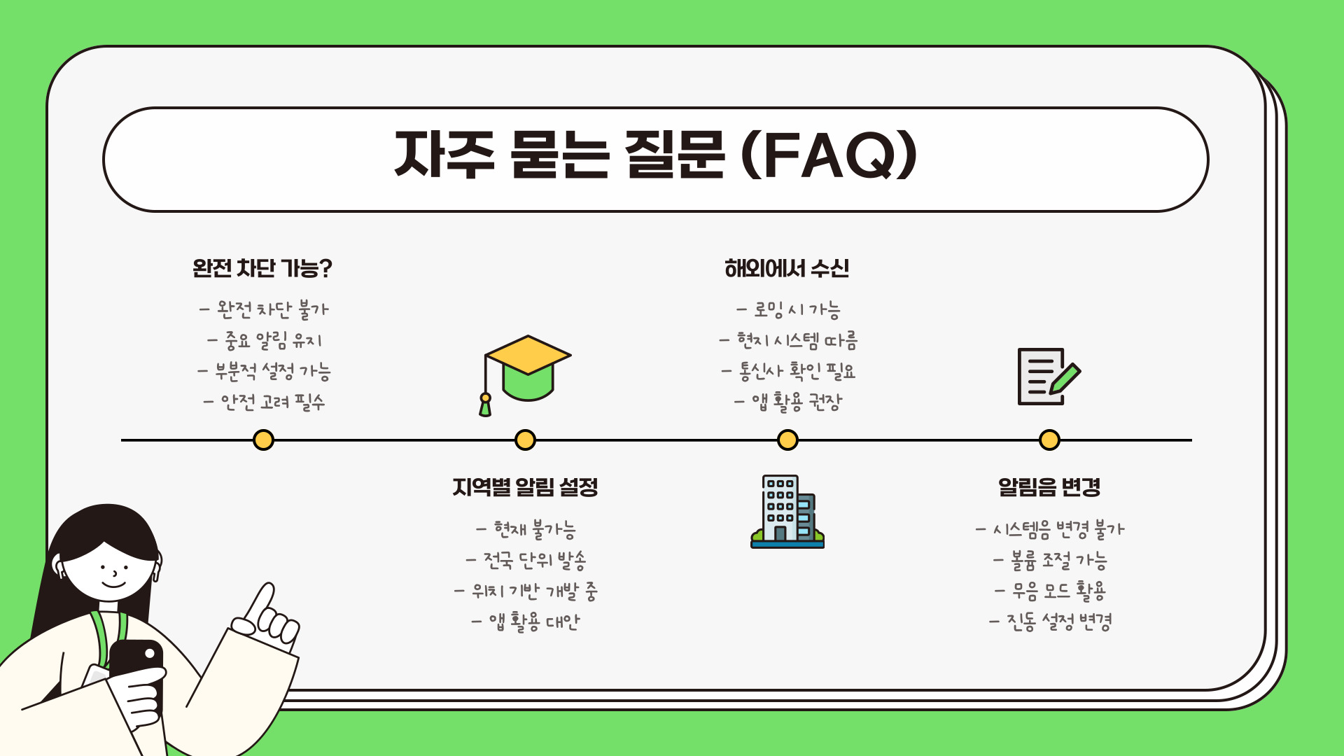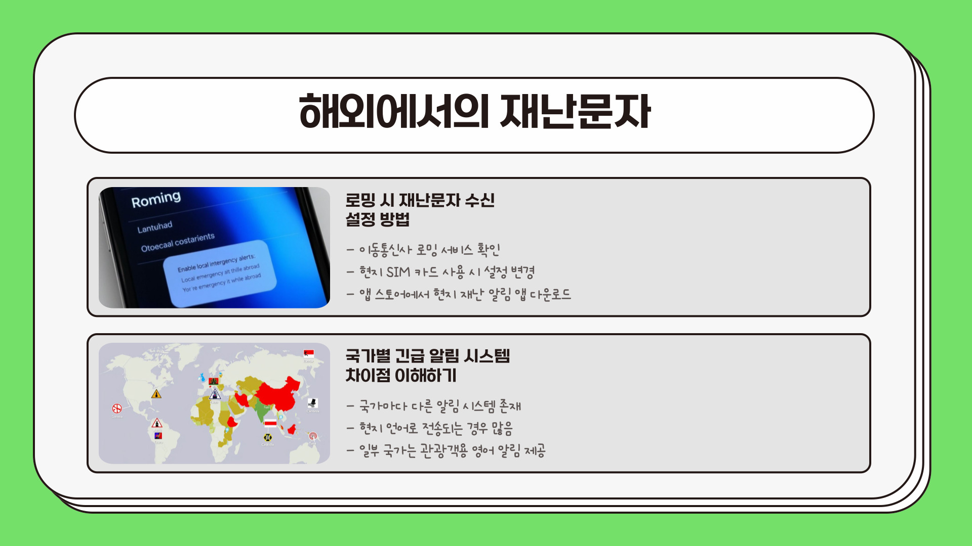 • 재난문자 알림은 긴급 상황에서 유용하지만 불필요할 수 있음.