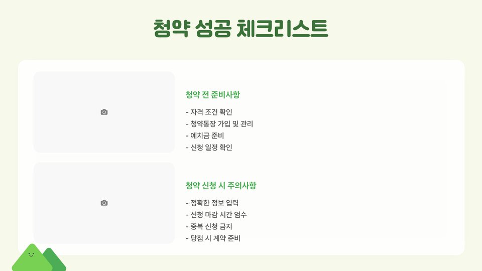 | 주택청약 통장 | 필수, 일정 금액 이상 예치 |