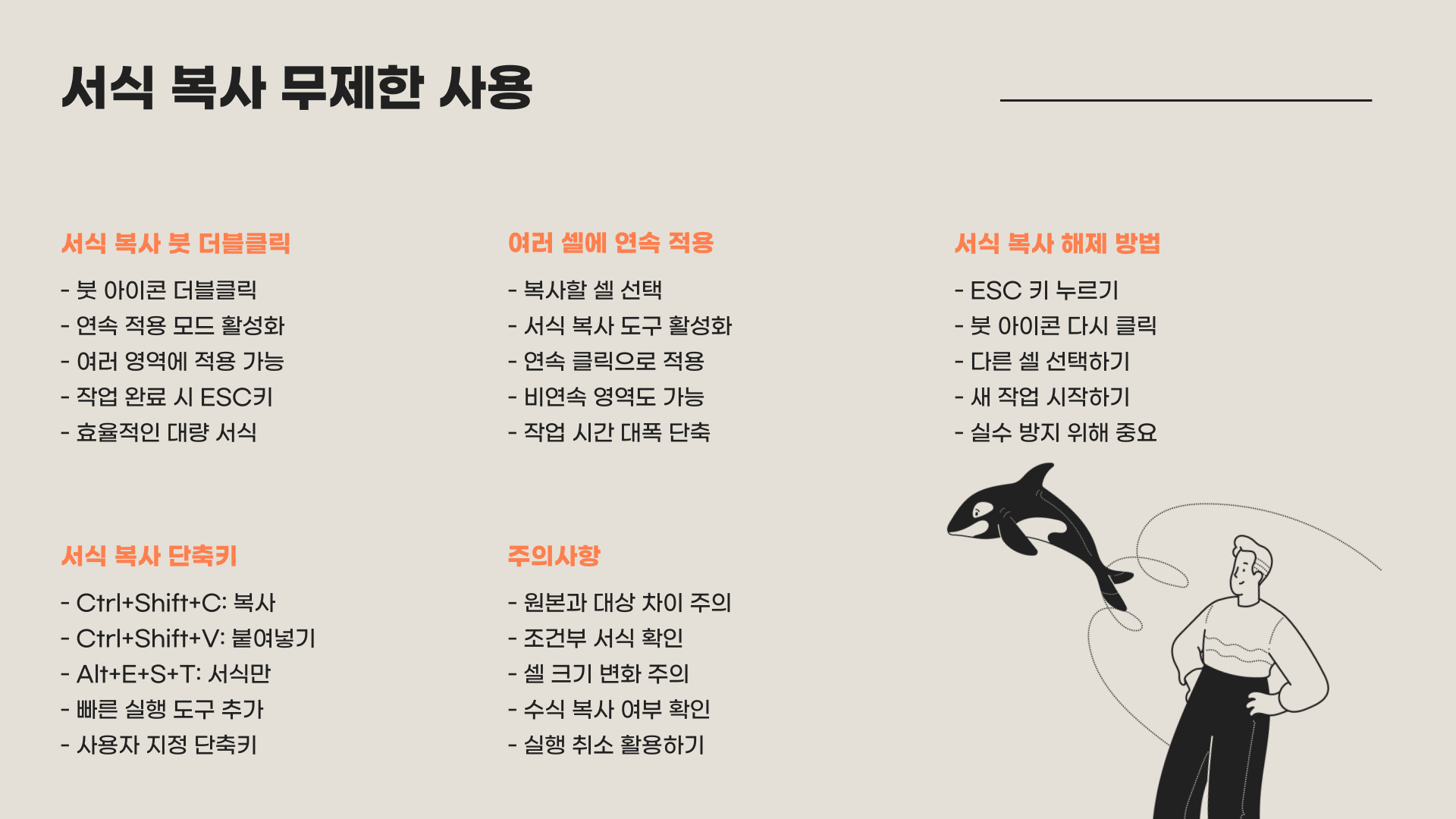- '서식 복사기'를 활용해 여러 셀에 적용
