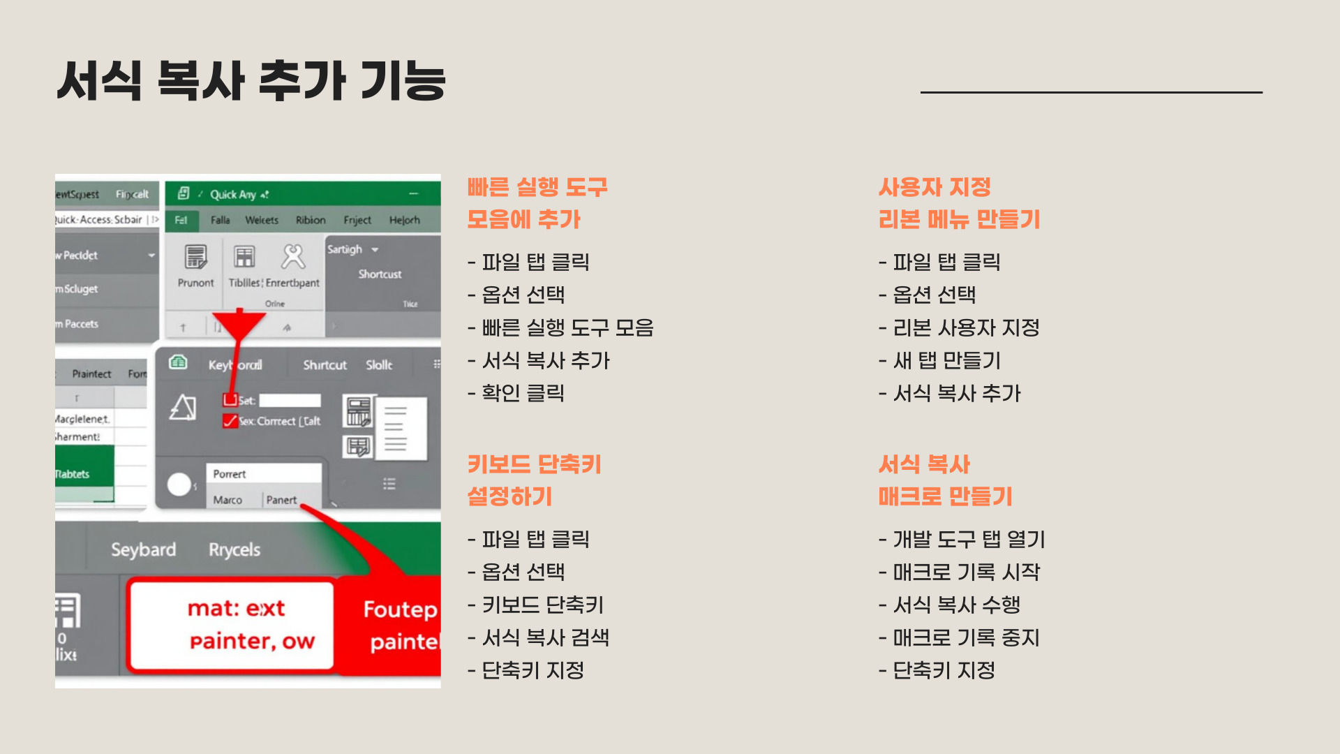 서식 복사를 더욱 효율적으로 활용하기 위한 몇 가지 유용한 팁을 소개합니다. 첫째, 단축키를 활용하는 방법입니다. 엑셀에서는 Ctrl + C로 복사하고, Ctrl + Alt + V로 서식 붙여넣기를 할 수 있습니다. 이렇게 하면 마우스를 사용하지 않고도 빠르게 서식을 적용할 수 있어 효율적인 작업이 가능합니다.