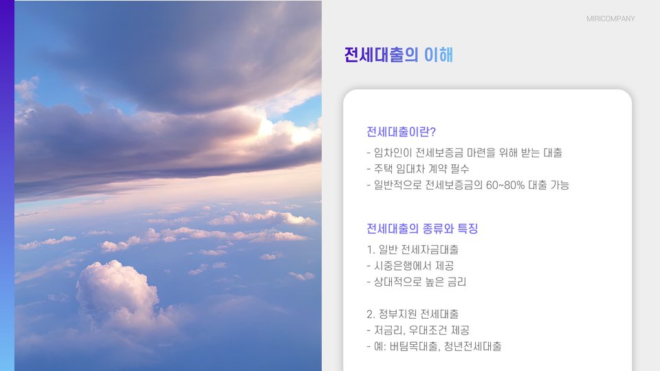 - 전세대출은 금융기관에서 자금을 빌려 집주인의 전세금을 지급하는 방법입니다.
