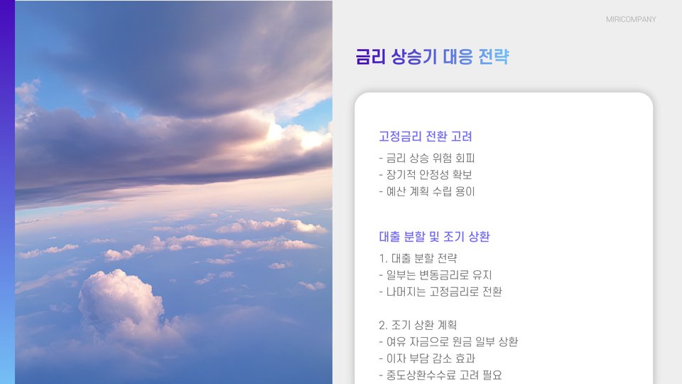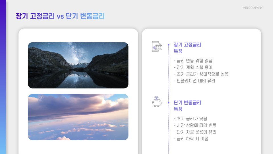 - 고정금리와 변동금리 상품을 비교하여 선택하는 것이 필수적입니다.