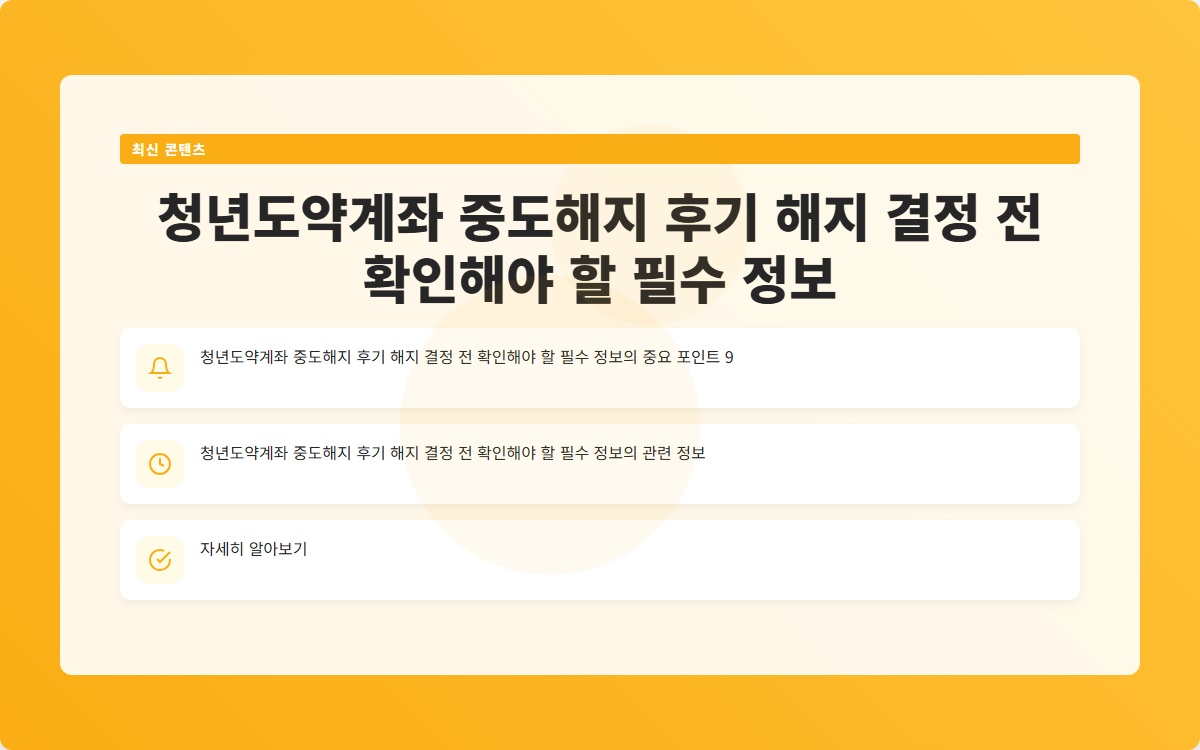청년도약계좌 중도해지 후기 해지 결정 전 확인해야 할 필수 정보 바로가기
