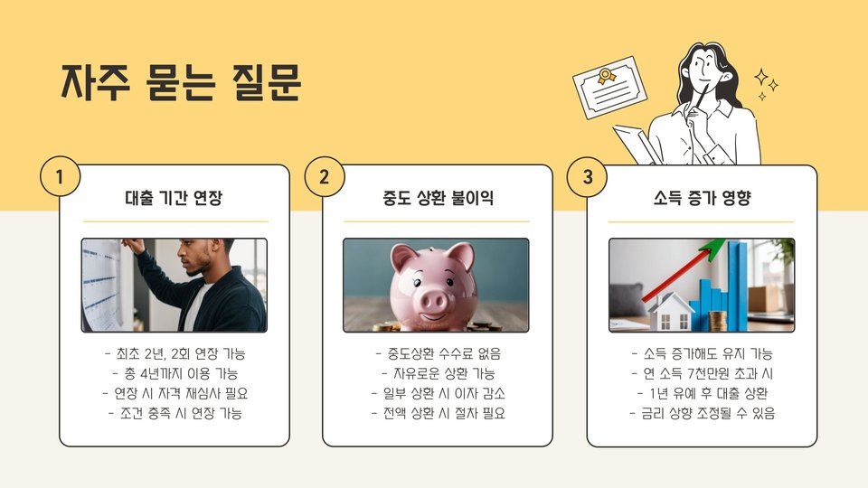 둘째, 정부의 지원 프로그램이므로 제도의 변화에 주의해야 합니다. 정책 변화가 발생할 경우, 이에 따라 조건이나 혜택이 달라질 수 있습니다.