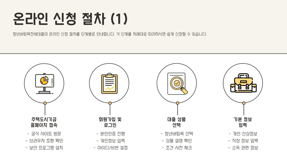 - 필요 서류: 주민등록등본, 소득증명서, 전세 계약서 등