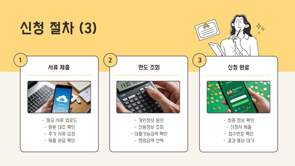 - 신청 시 필요한 서류: 주민등록등본, 소득증명서 등