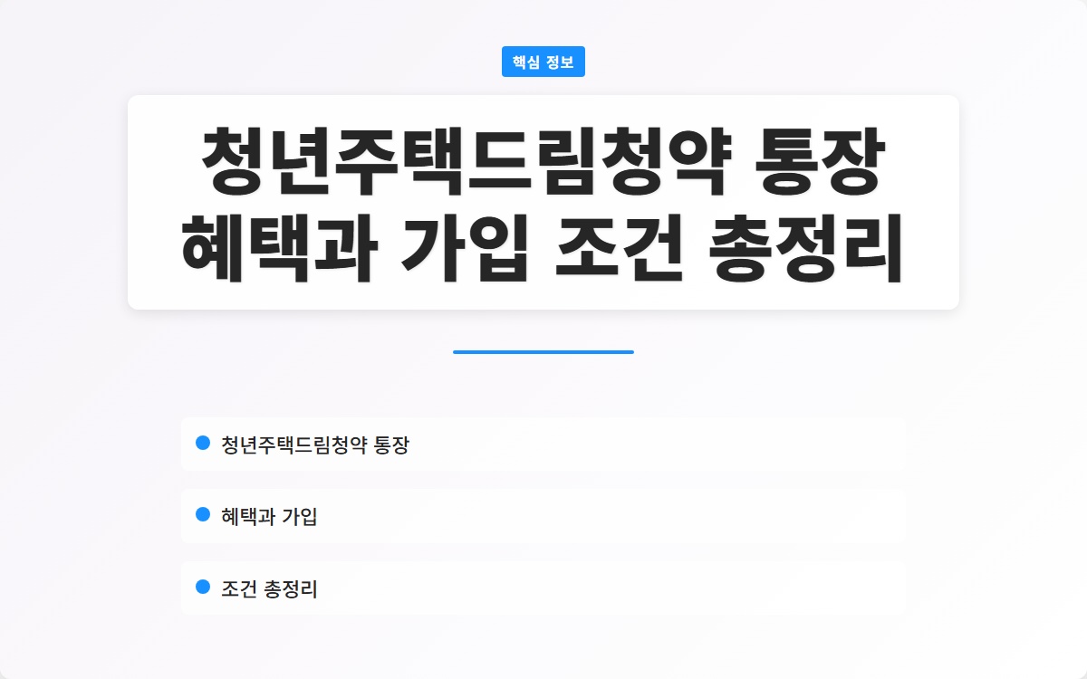 청년주택드림청약 통장 혜택과 가입 조건 총정리