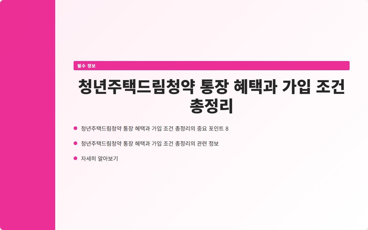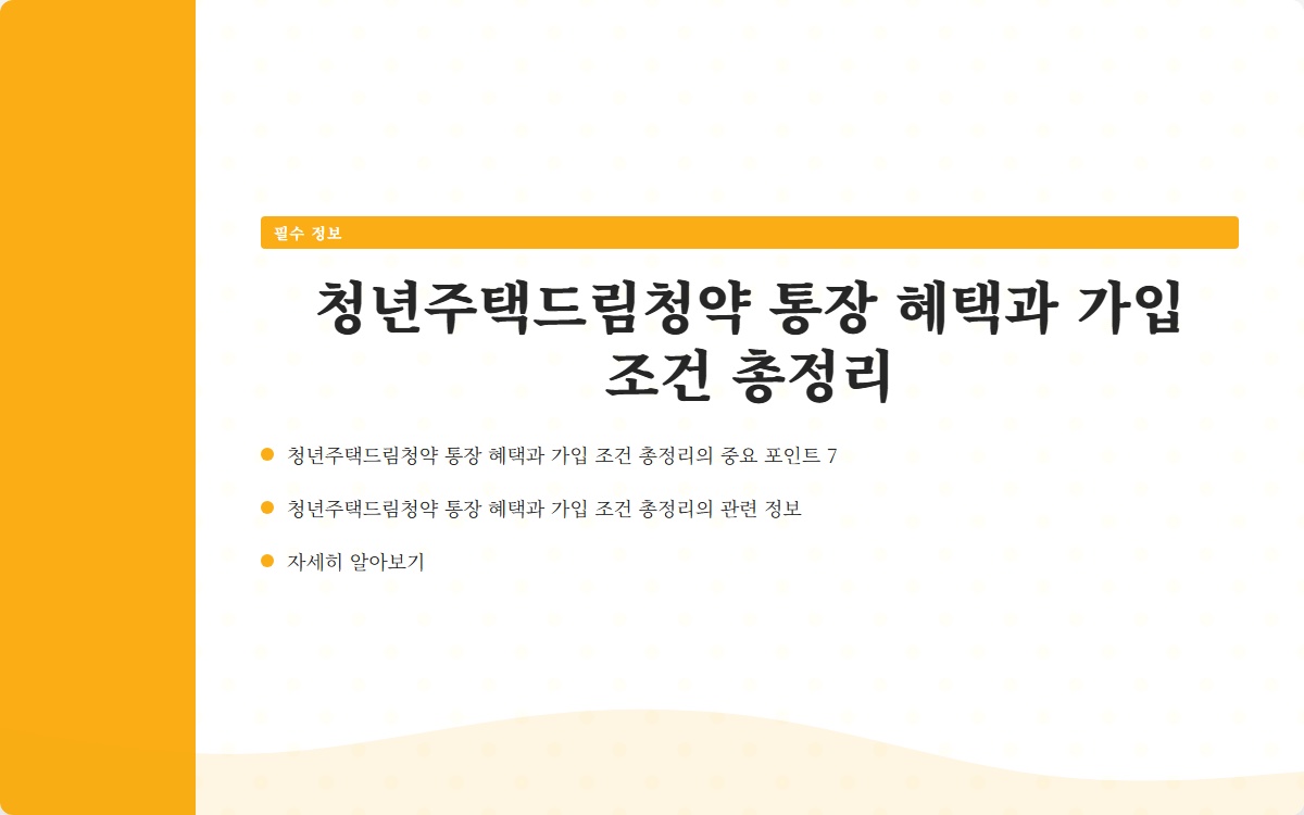 청년주택드림청약 통장 혜택과 조건 한눈에 확인하기 바로가기