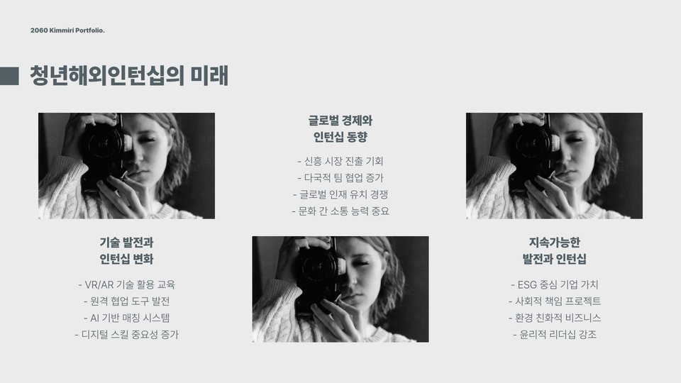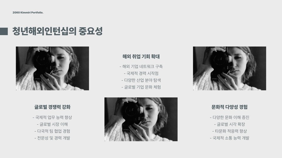 청년해외인턴십은 단순히 외국에서 일하는 것이 아니라, 글로벌 역량을 키우고, 다양한 문화적 배경을 이해하는 데 큰 도움이 됩니다. 특히, 국내 기업이 아닌 외국 기업에서의 경험은 다양한 시각을 제공하고, 취업 시장에서의 경쟁력을 높여줍니다. 또한, 인턴십을 통해 실무 경험을 쌓고, 언어 능력을 향상시킬 수 있는 기회이기도 합니다.
