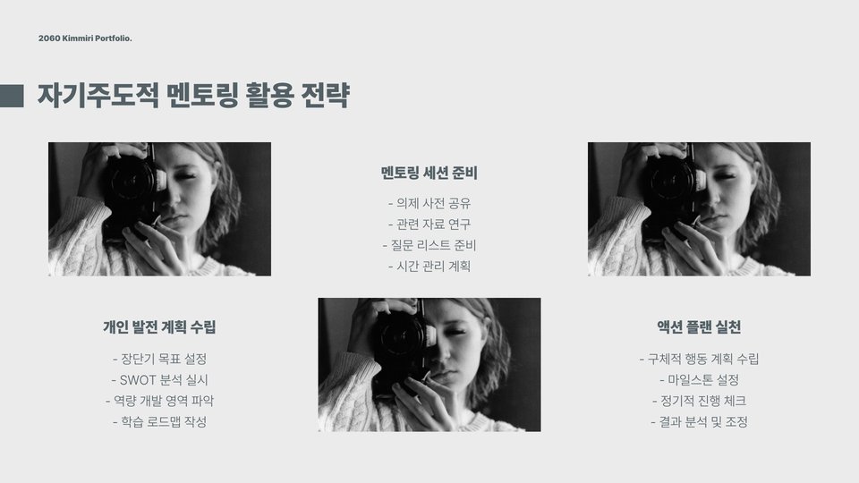 또한, 멘토링 기간 동안 적극적으로 질문하고 피드백을 받아들이는 자세가 필요합니다. 멘토는 여러분의 경험을 바탕으로 조언을 제공할 것이므로, 열린 마음으로 받아들이세요. 이 과정에서 얻은 지식과 경험은 여러분의 성장에 큰 도움이 될 것입니다.
