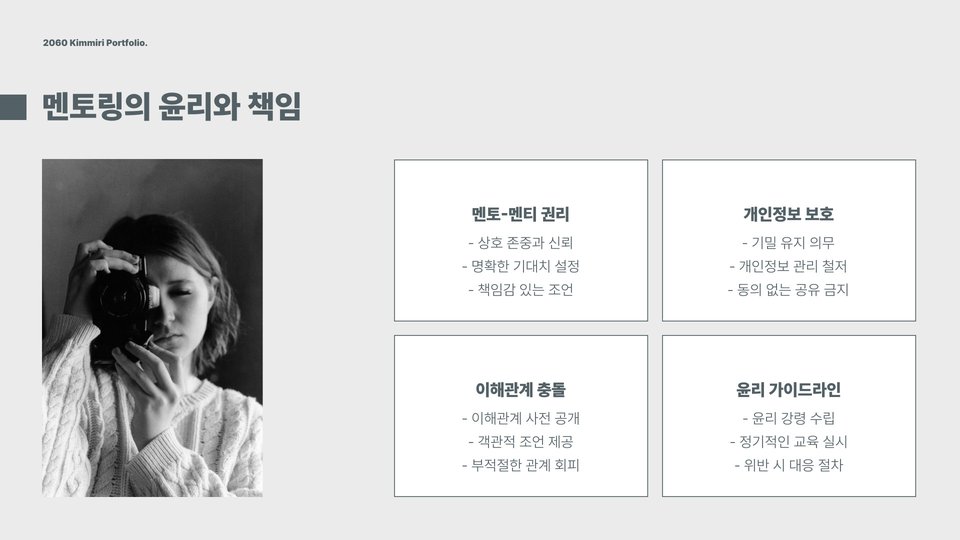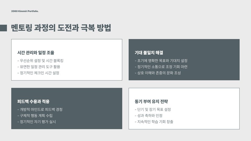 - 멘토와의 신뢰를 쌓기 위해 정기적인 소통이 필요합니다.