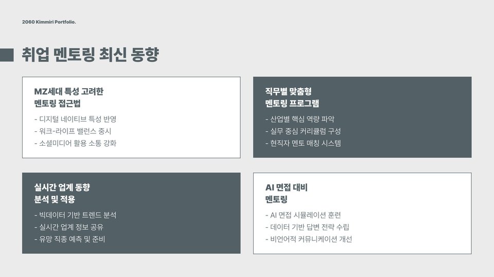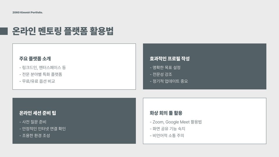- 디지털 트렌드를 활용한 온라인 멘토링의 확산.