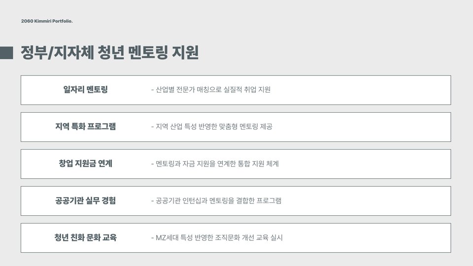 - 청년 멘토링은 경험이 부족한 청년들에게 큰 지원이 됩니다.