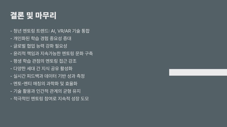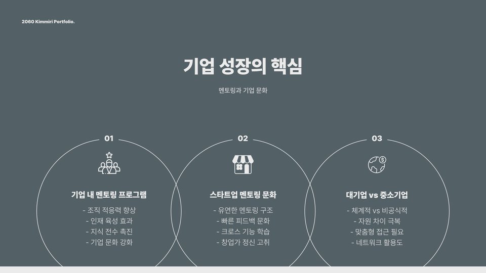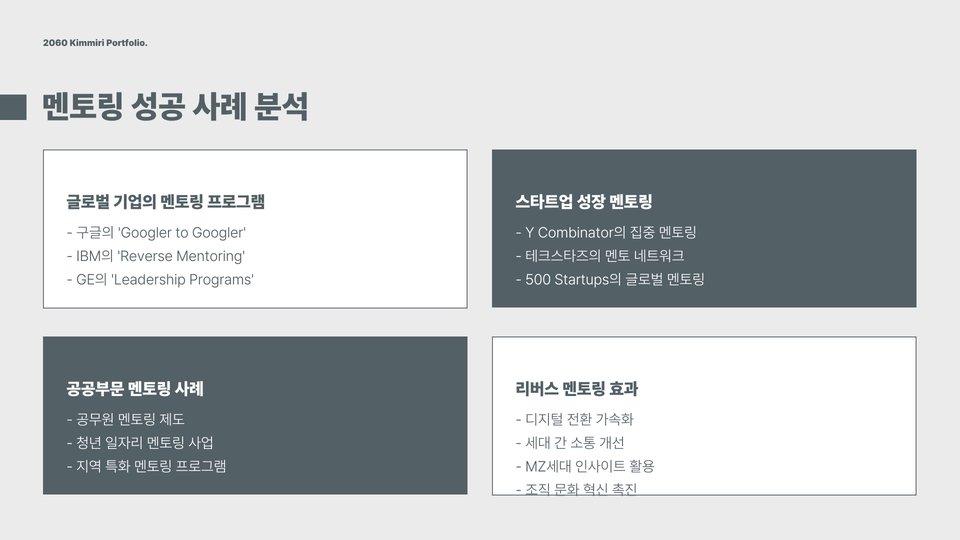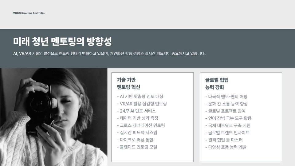 | 디지털 플랫폼의 활용 | 온라인 멘토링 프로그램의 활성화로 거리 제한이 해소됨. |