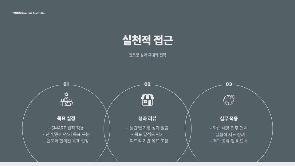 | 지속적인 관계 형성 | 신뢰를 바탕으로 한 장기적인 멘토-멘티 관계 목표. |