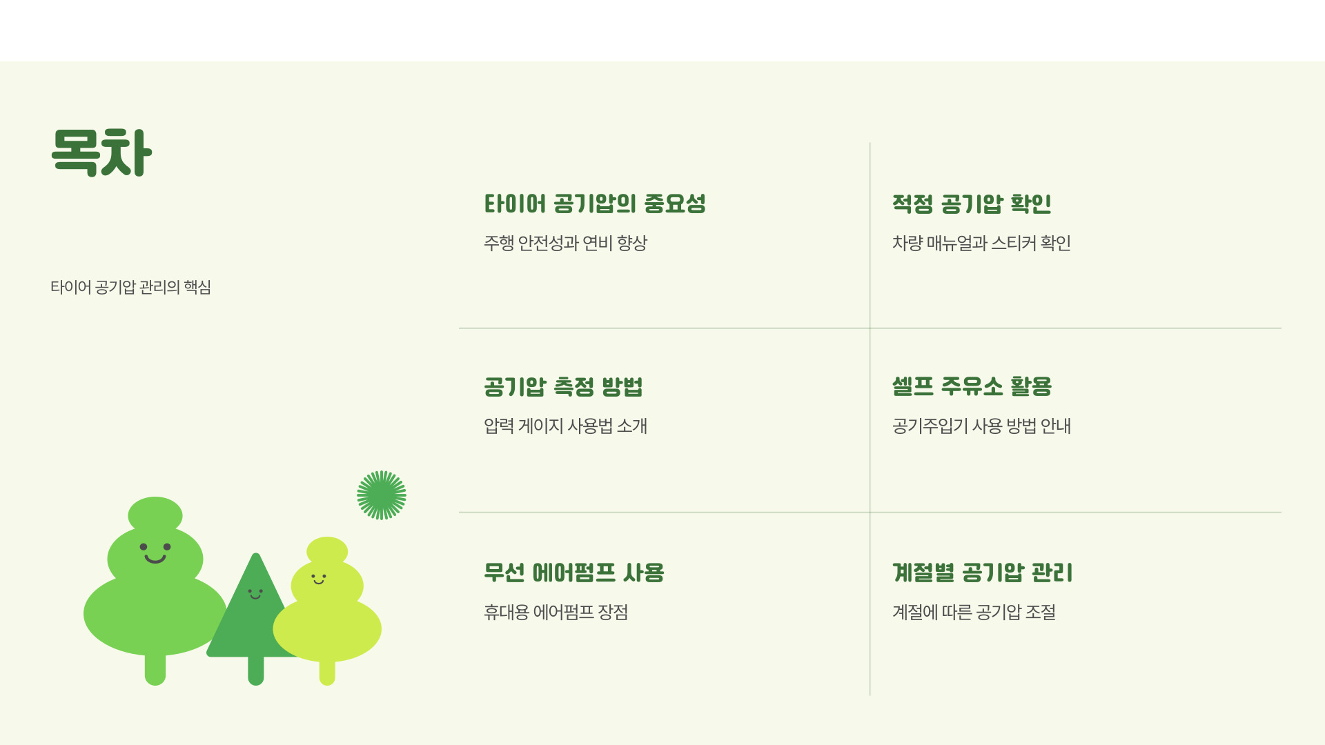 | 안전 운전 | 정기적인 공기압 체크 및 타이어 관리 |