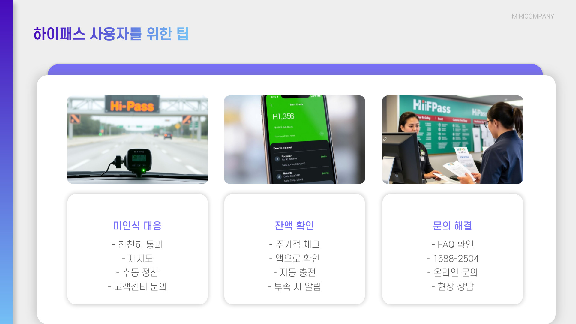 결론적으로, 고속도로를 이용하면서 통행료 발행 문제를 예방하기 위해 정기적인 점검과 미납 내역의 주기적인 확인이 중요합니다. 하이패스 단말기의 상태를 점검하고 문제가 발생할 경우 신속한 조치를 취하는 것이 과태료를 예방하는 가장 좋은 방법입니다.