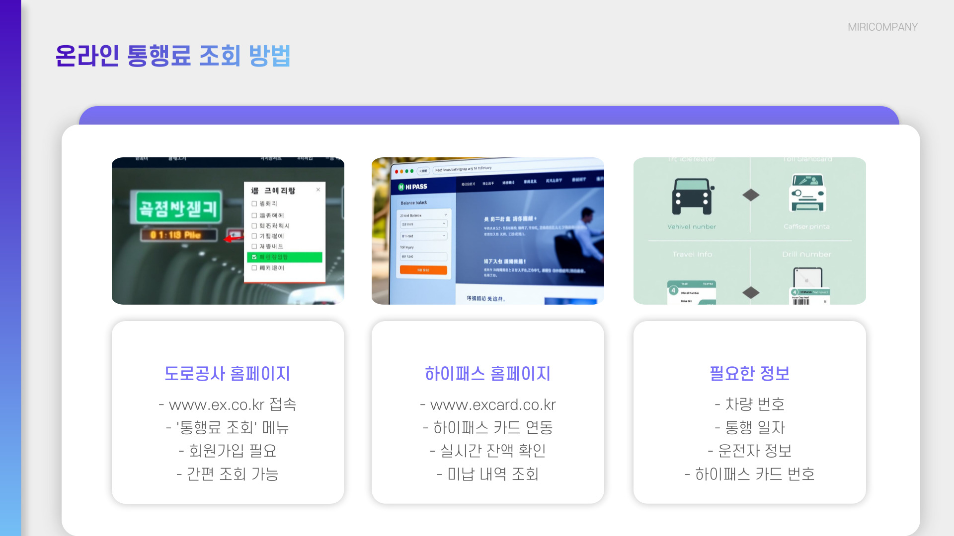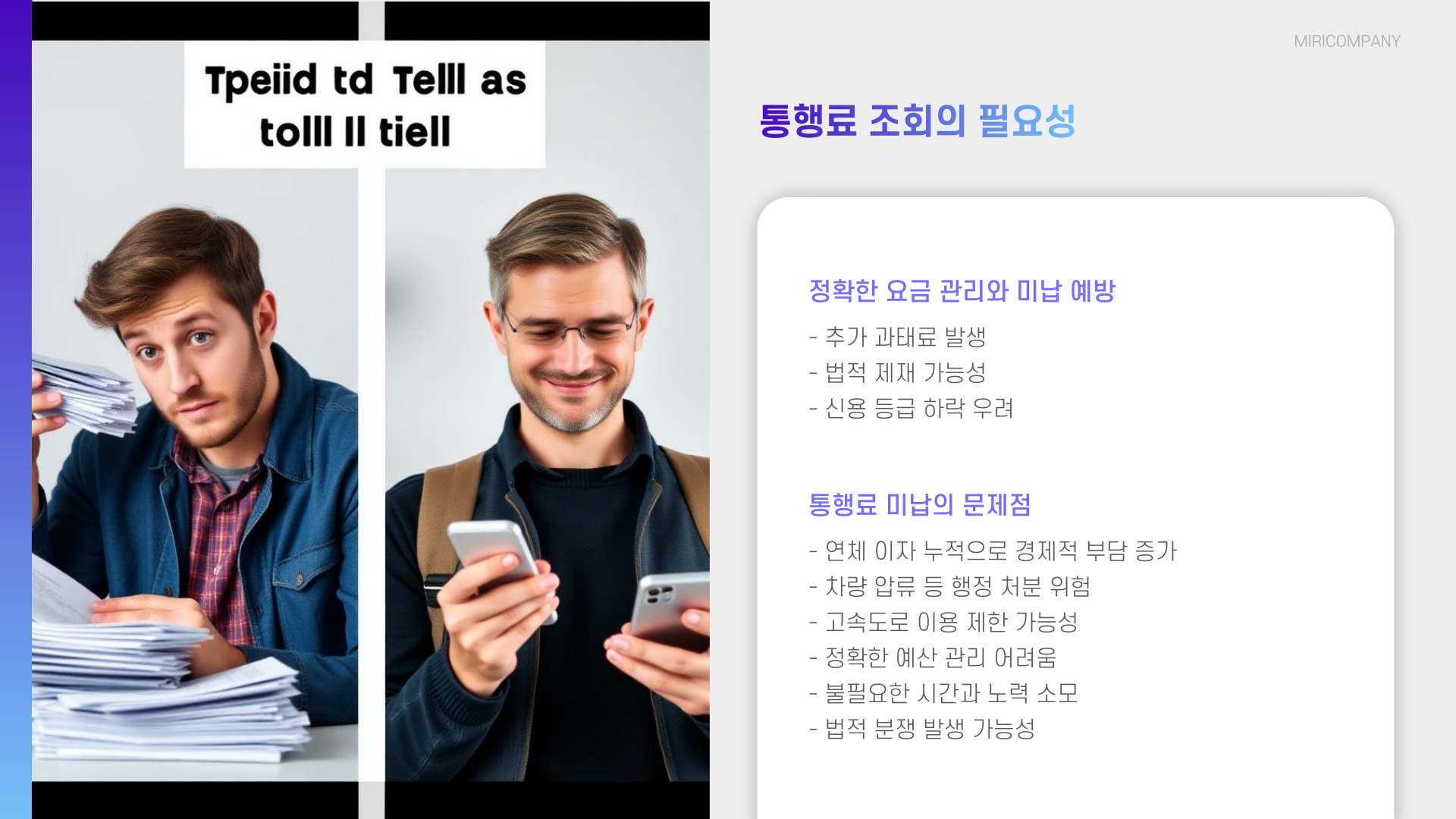 고속도로를 이용하는 데 있어 통행료는 필수적인 요소입니다. 특히, 하이패스를 사용할 경우 더욱 편리하게 통행료를 납부할 수 있지만, 간혹 무단통과로 인해 미납 문제가 발생할 수 있습니다. 이런 상황을 예방하고, 통행료를 간편하게 조회할 수 있는 방법을 알아보겠습니다. 통행료 조회를 통해 미납된 금액을 확인하고, 신속하게 해결하는 방법을 배워보세요.