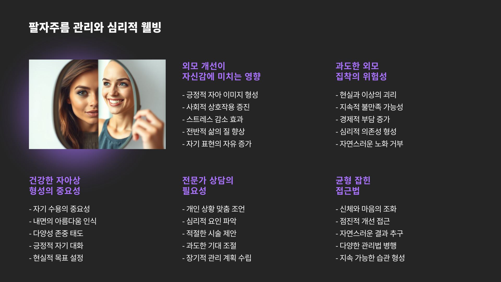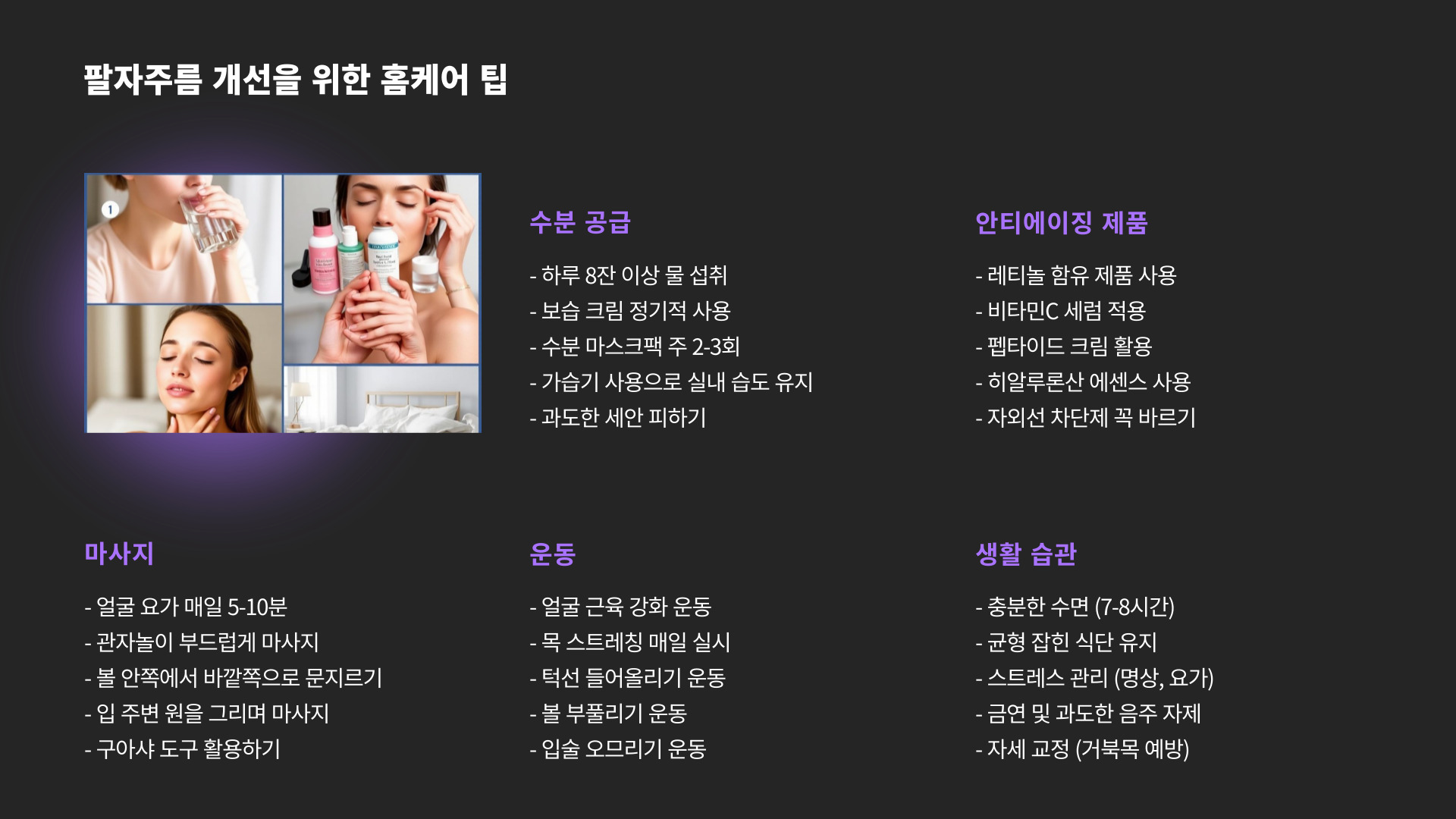 Tags: 팔자주름, 보톡스, 필러, 주름 개선, 피부 탄력, 주의사항, 시술, 미용, 스킨케어, 안티에이징