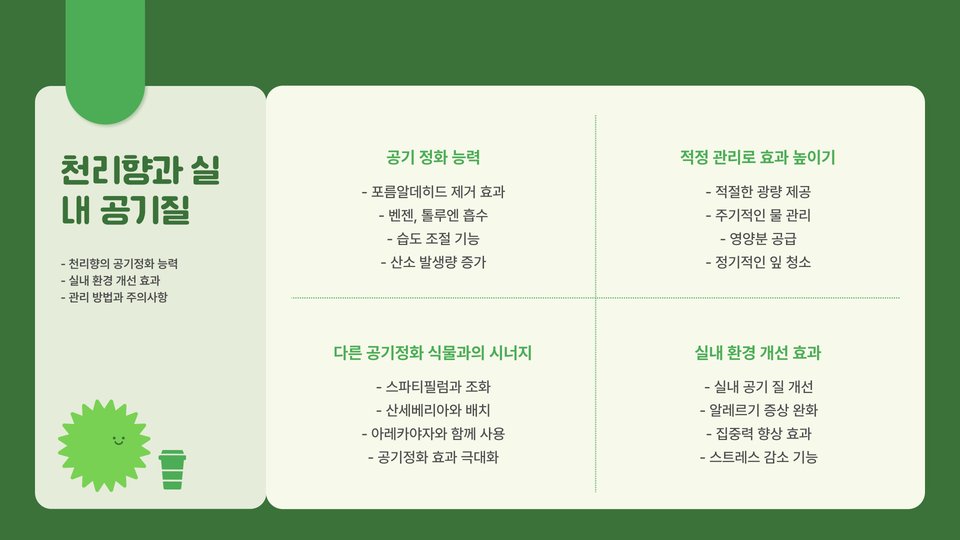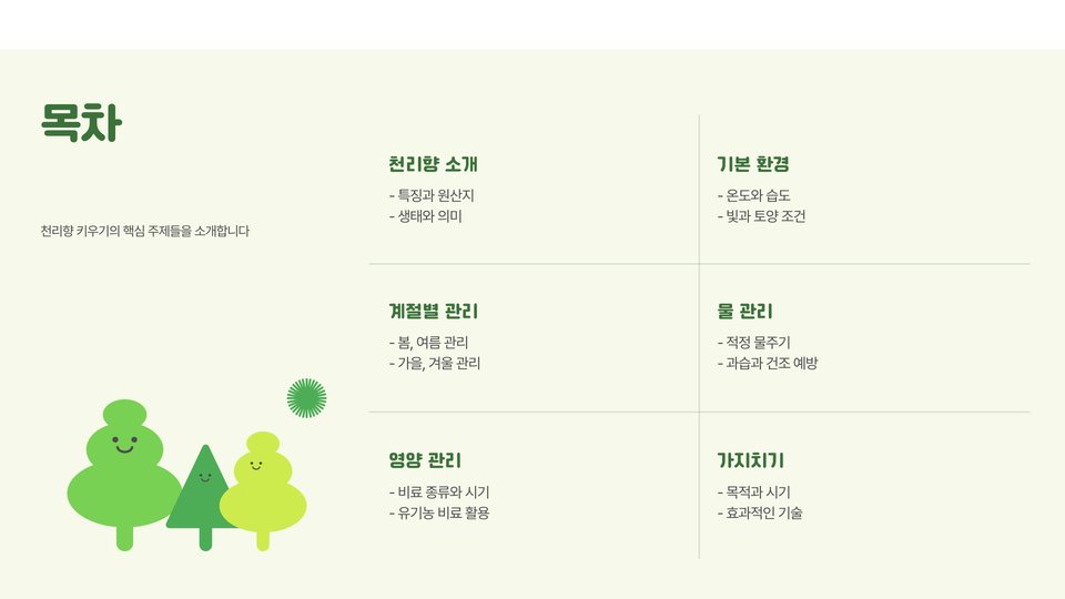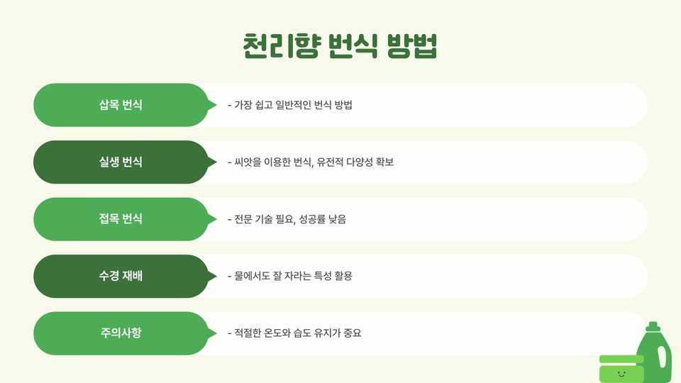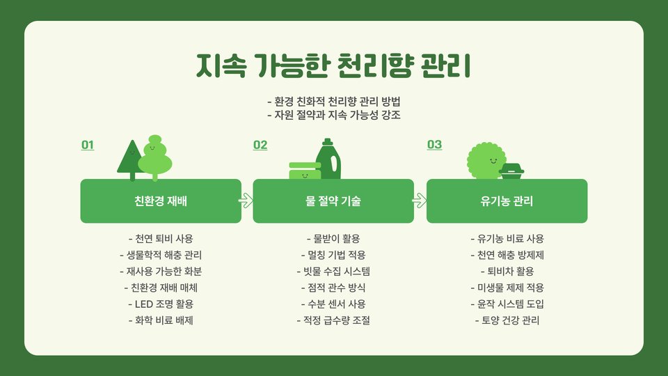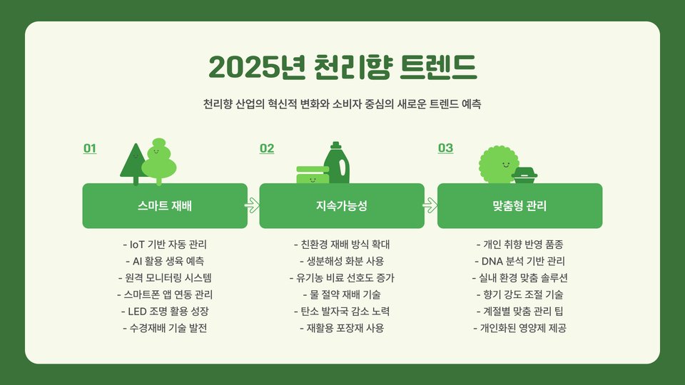 천리향은 그 아름다움과 향기로 많은 사랑을 받는 식물입니다. 올바른 환경에서 주기적인 관리와 관심을 기울이면 건강하게 자랄 수 있습니다. 2025년을 목표로 지금부터 천리향을 키우기 시작해 보세요! 이 과정을 통해 많은 즐거움과 만족을 느낄 수 있을 것입니다. 천리향 재배의 기초를 잘 이해하고 실천하여, 향기로운 공간을 만들어 보세요.