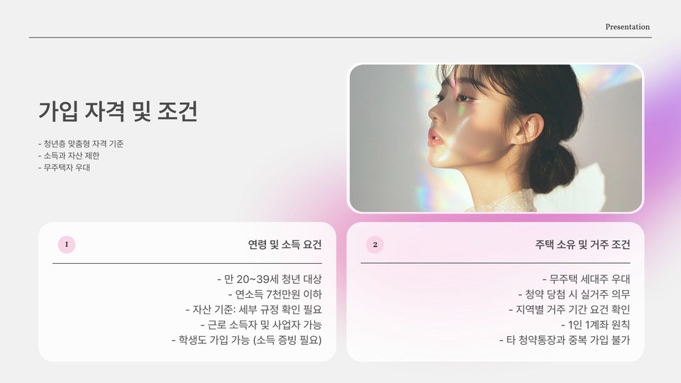 - 2025년부터 청약 자격 요건이 확대되고, 다양한 주택 옵션이 제공됩니다.