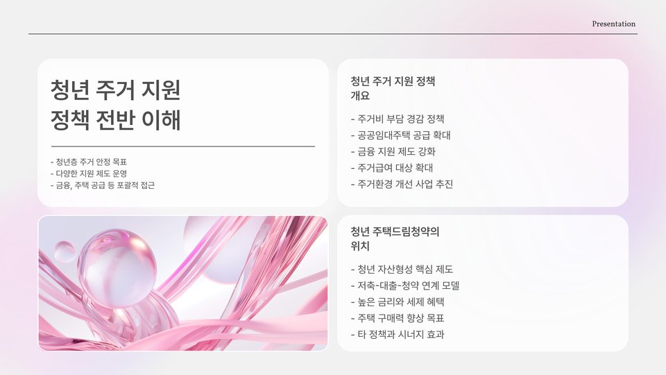 마지막으로, 청년 주거 문제 해결을 위해 다양한 정책들이 복합적으로 이루어지고 있다는 점을 강조하고 싶습니다. 예를 들어, 청년층을 대상으로 한 주택 바우처와 같은 지원 제도가 있습니다. 이러한 내용들은 기본적으로 청년들이 주택 구매에 있어서 느끼는 여러 부담을 경감시키기 위한 노력이 반영된 것입니다.