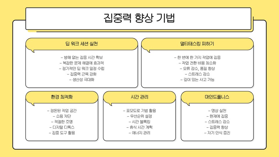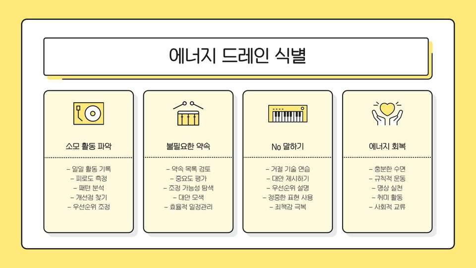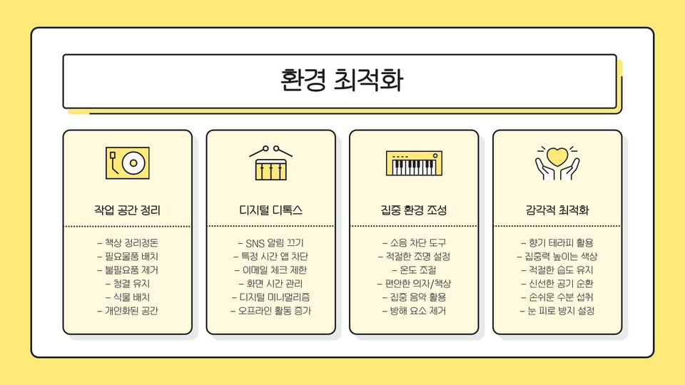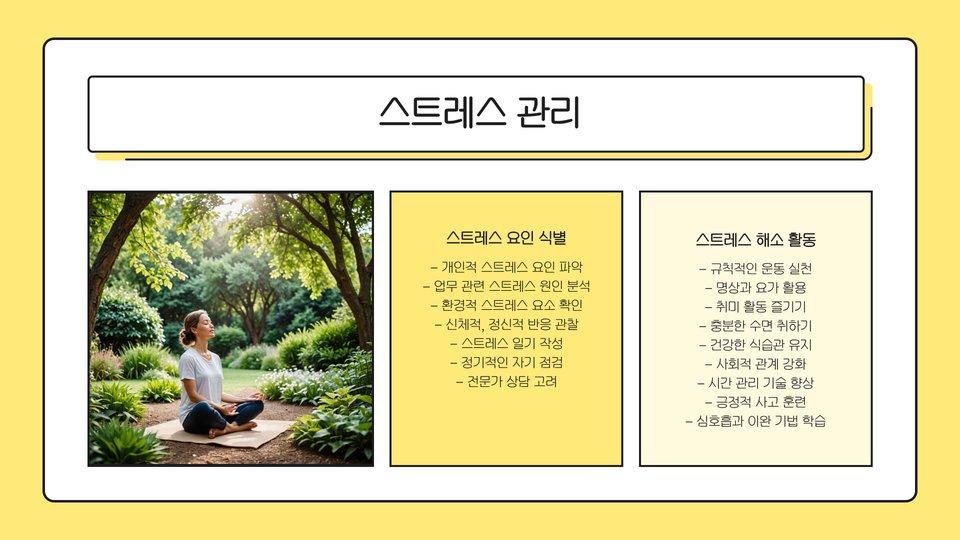 - 운동과 루틴 점검을 통해 생산성을 높일 수 있습니다.