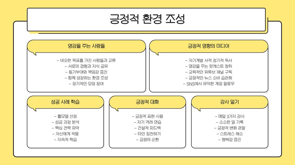 두 번째로, 일정 관리도 큰 도움이 됩니다. 매일의 계획을 작성하고, 이를 실행하는 과정에서 소중한 성취감을 느끼는 것이 중요합니다. 또한, 친구나 동료와의 성공 공유는 더욱 큰 동기 부여를 제공합니다.