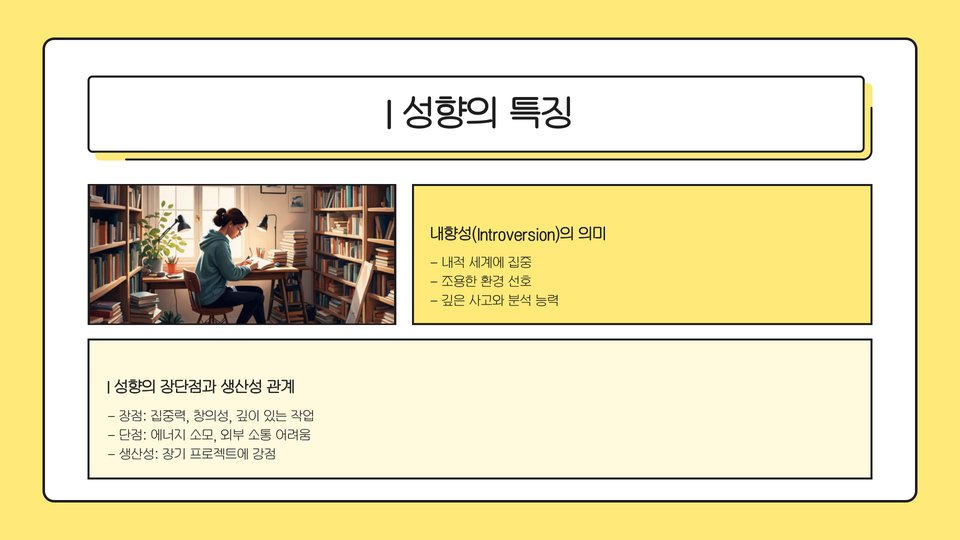 i 성향의 게으름은 여러 요인이 복합적으로 작용하는 결과입니다. 그러므로 자신의 상태를 이해하고, 위에서 언급한 방법들을 활용하여 조금씩 변화해 나가길 바랍니다. 미래의 나에게 투자하는 것이므로, 그 과정이 어렵더라도 포기하지 말고 지속적으로 노력해 나가세요!