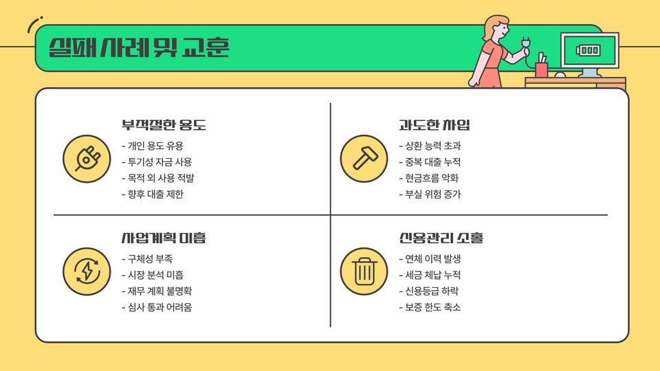 마지막으로, 성공적인 사업 운영은 정보와 지식에 기반합니다. 각 금융기관의 상품을 잘 이해하고, 스스로에게 가장 알맞은 선택을 하는 것이 중요하다는 점을 잊지 마세요.