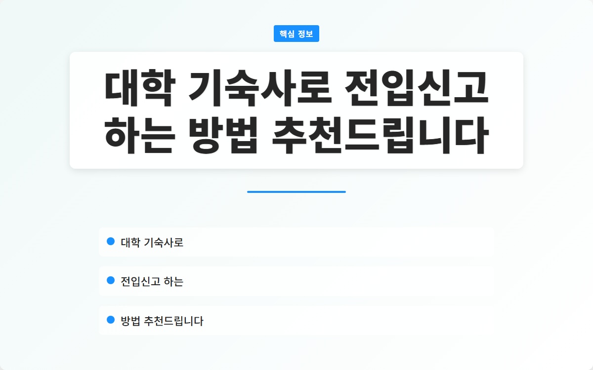 대학교 기숙사 전입신고는 다소 번거로운 과정일 수 있지만, 법적으로 꼭 필요한 절차입니다. 기숙사 생활을 시작하기 전, 이 과정을 잘 이해하고 준비하여 불필요한 문제를 예방하시길 바랍니다. 정확한 주소 등록을 통해 안전하고 편리한 대학 생활을 누리세요!