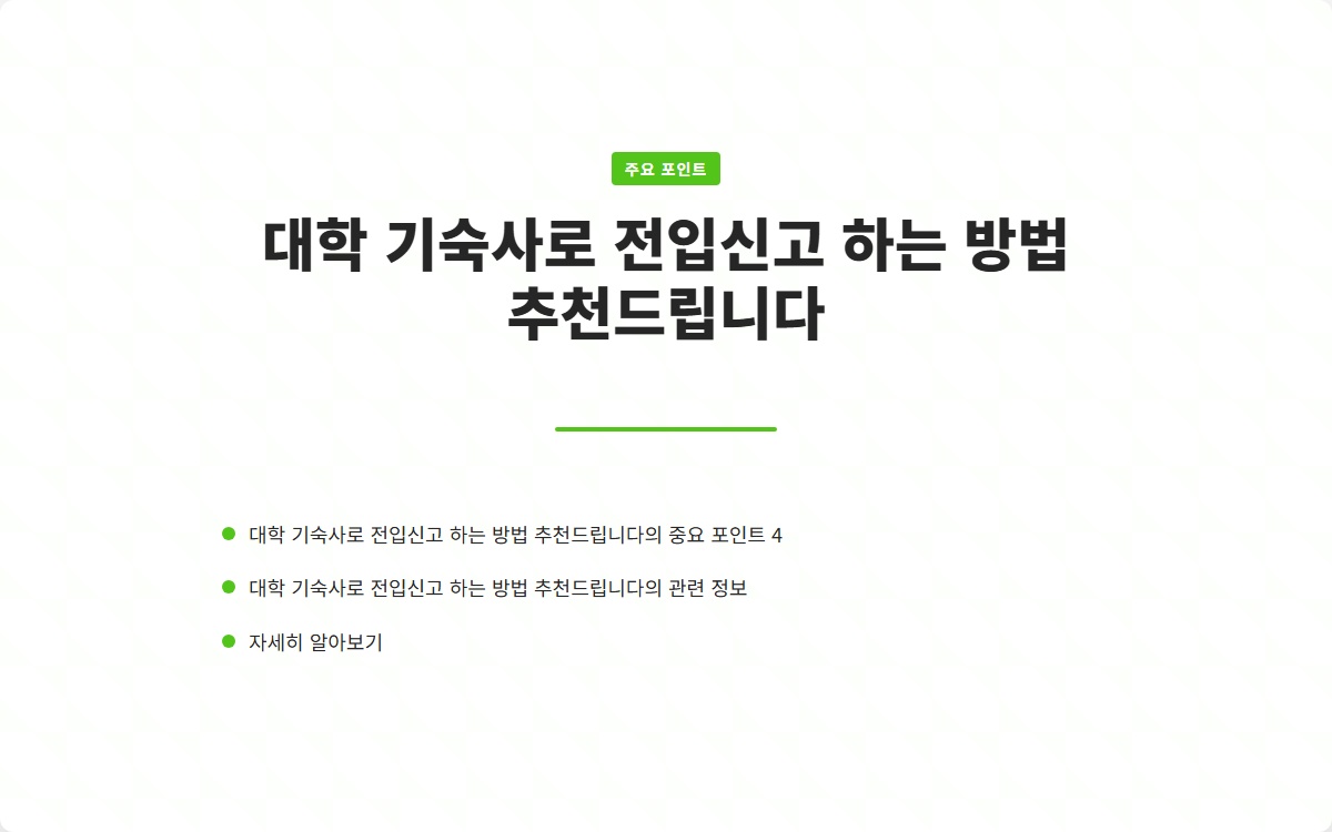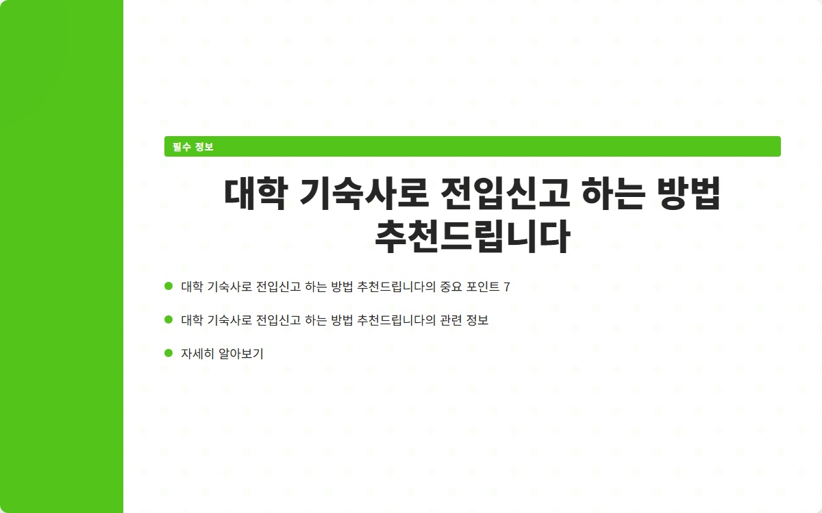 대학교에 입학하면서 기숙사 생활을 시작하는 많은 학생들이 전입신고에 대해 궁금해합니다. 기숙사로 전입신고를 하는 것은 단순한 절차처럼 보일 수 있지만, 실제로는 여러 가지 준비사항과 절차가 필요합니다. 이번 글에서는 대학교 기숙사 전입신고를 하는 방법에 대해 자세히 알아보겠습니다.
