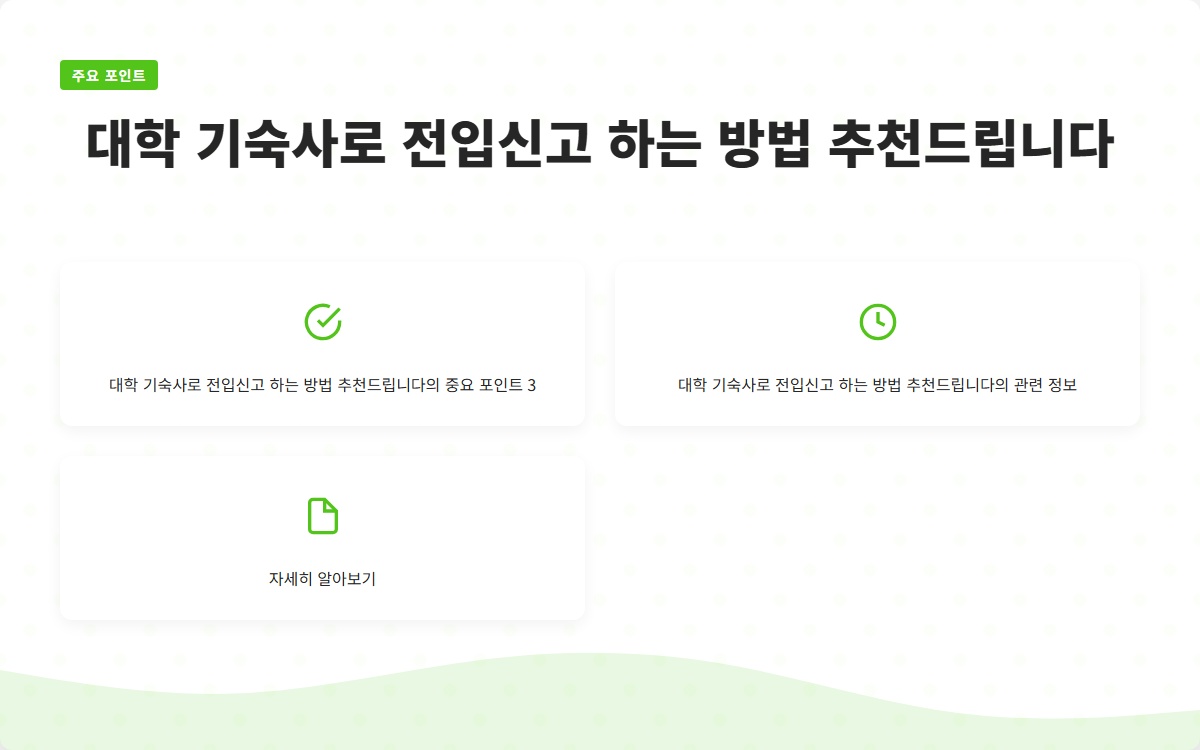 대학교 기숙사에서의 생활은 새로운 시작이자 중요한 경험입니다. 전입신고를 통해 기숙사 생활을 원활하게 준비하고, 재미있고 유익한 대학 생활을 하시길 바랍니다. 궁금한 점이 있다면 직접 대학 기숙사 담당자나 주민센터에 문의하여 문제를 해결하는 것도 도움이 될 것입니다.