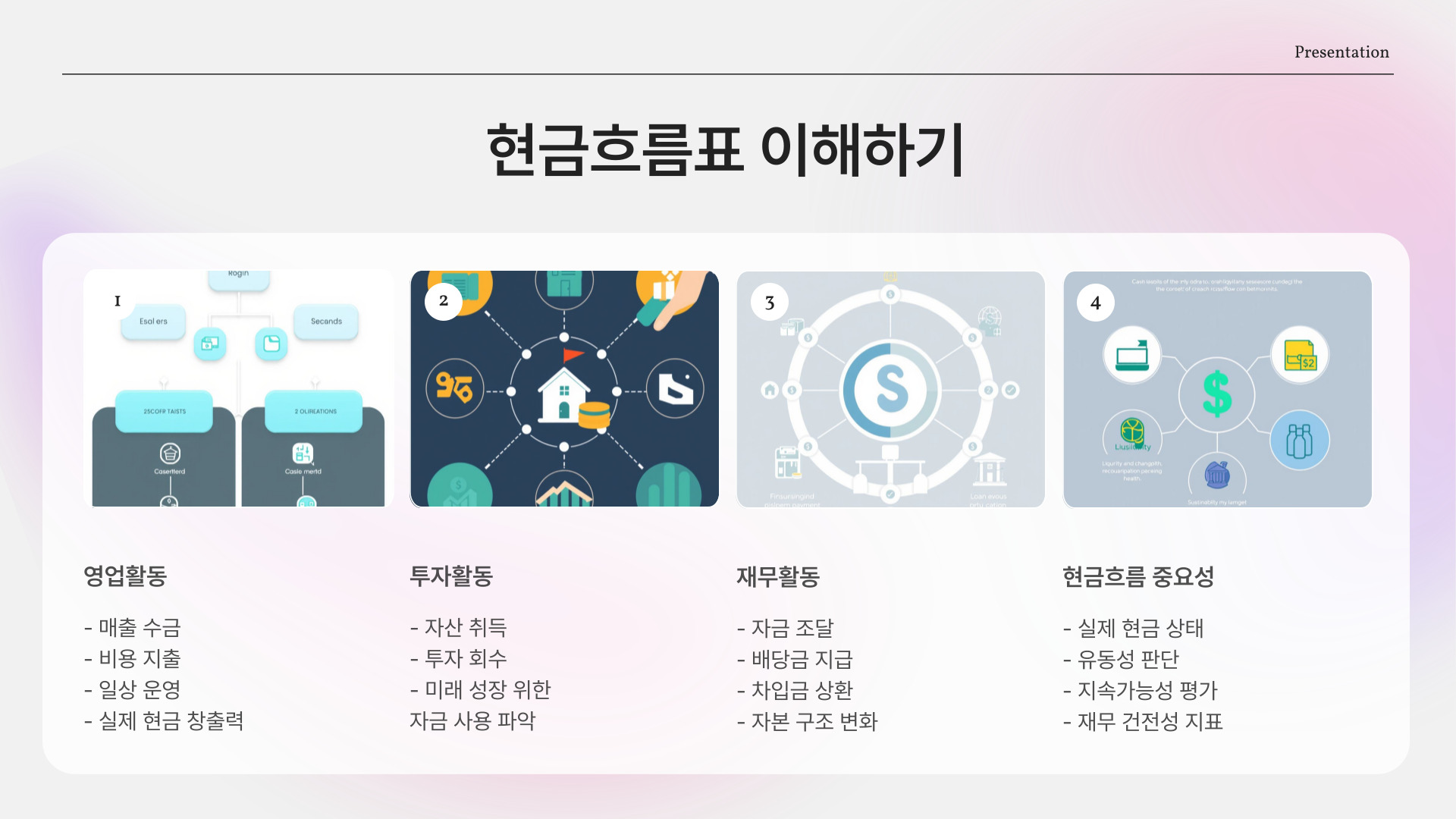 마지막으로 현금흐름표는 기업의 현금 유입과 유출을 보여주며, 기업의 실제 현금 상황을 파악하는 데 도 도움이 됩니다. 이 세 가지 문서의 구조를 잘 이해하면 재무제표를 해석하는 데 큰 도움이 됩니다.